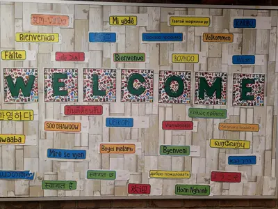 A key feature of the school’s commitment to belonging and well-being is its vibrant Welcome bulletin board, which helps create a welcoming environment for all!